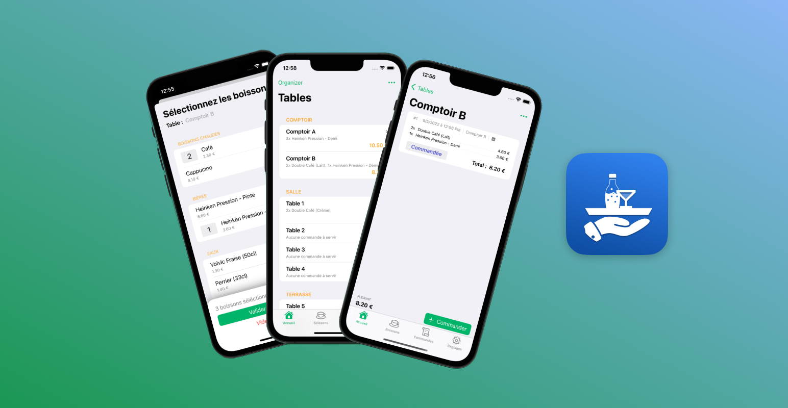 Application mobile à destination des serveurs d'un bar ou d'un restaurant, permettant de prendre des commandes et suivre l'état de chaque table.